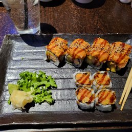 Beautiful place, friendly staff, great menu and fast service! My kind of place. I stopped here on the way to a performance at the college in town. I need to kill about an hour and 1/2 before load-in. Coming on out of the cold to hot green tea, miso soup and sweet potato roll, is the way to go. As many restaurant do, the out something on the table to snack on. Edamame! I will be here befo how're every future show to relax!